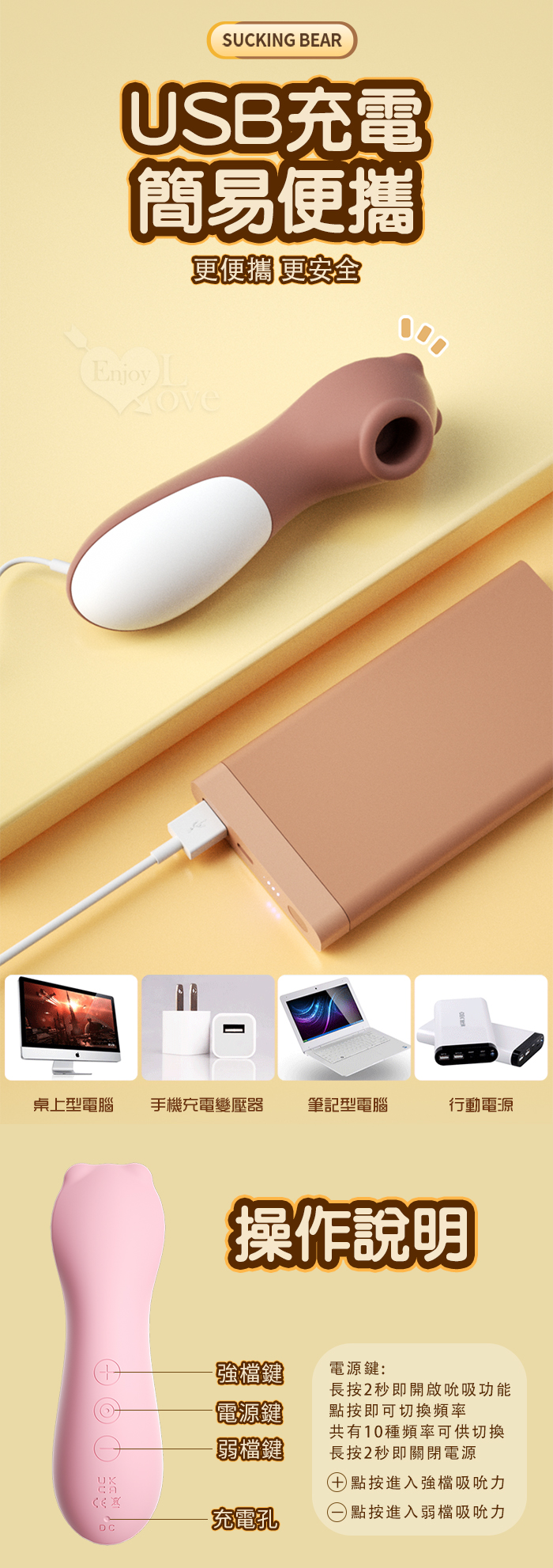 LILO 來樂 ‧ 麻吉熊 10段變頻X強弱2調控 強吻口愛蜜豆USB充電深層吸吮器-粉色