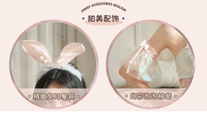 兔女郎角色扮演服!亮片網紗珍珠點綴綁帶美背幻彩花邊四件式套裝