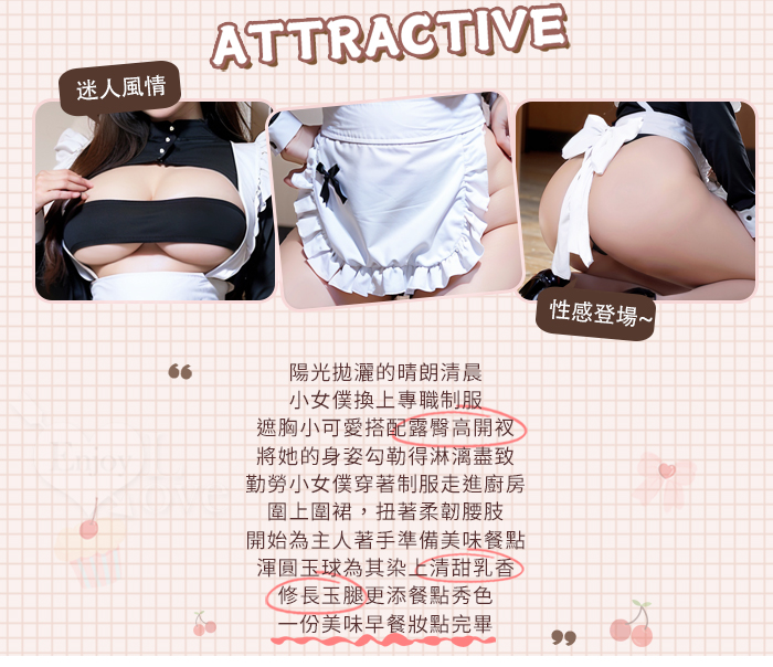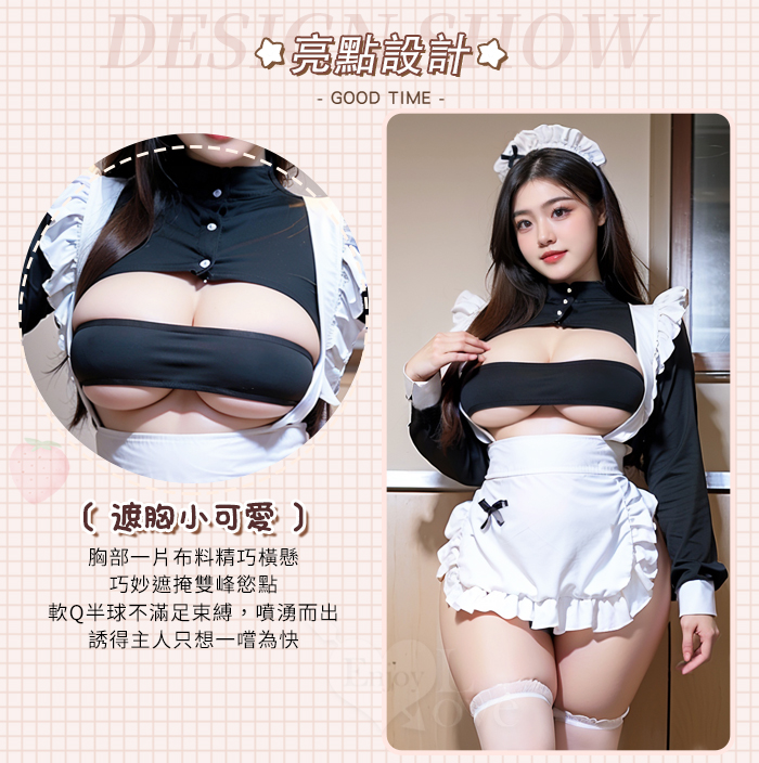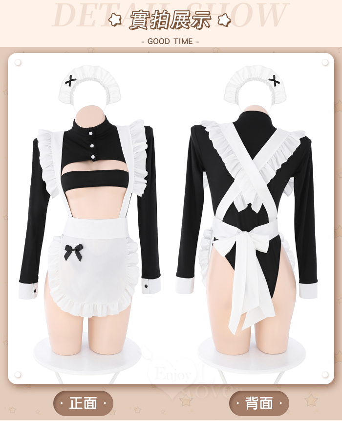 ►您現在的位置:首頁>【棉花糖女孩】大尺碼女僕角色扮演服!一字遮胸木耳花邊可開襠連身衣四件式套裝