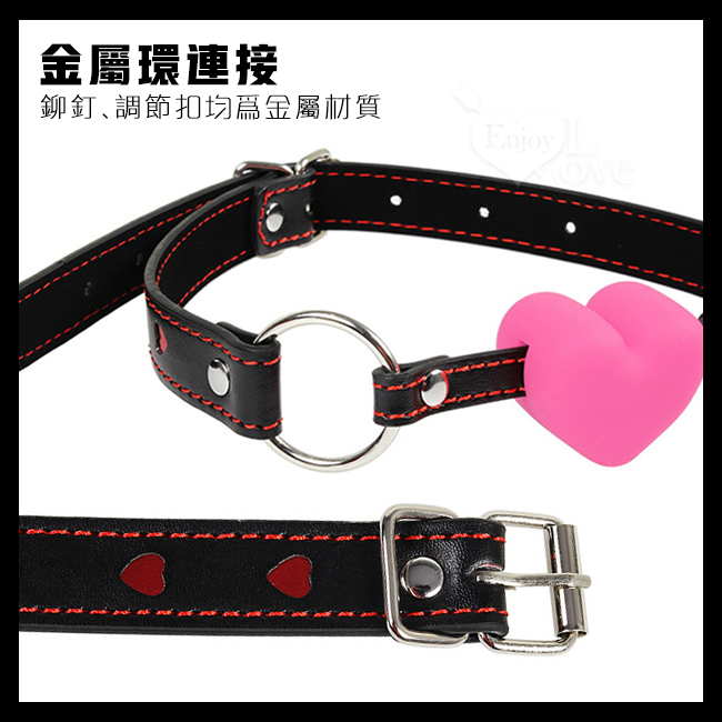 失語調教 ‧ 粉色心型舒適硅膠皮革口塞﹝增加屈辱感和無助感﹞