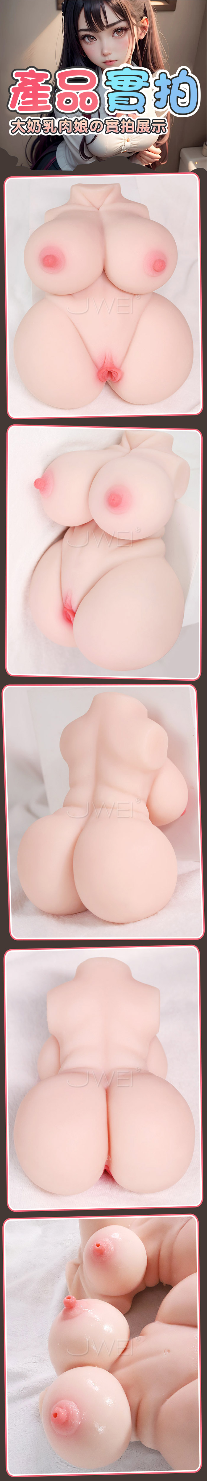 大奶乳肉娘,新奇享受大胸肥臀,迷人豐滿曲線 蜜桃翹臀,隱密花園,陰部通道,肉感滿滿 肉芽皺壁扭動 G點肉粒撥蹭 子宮腔道吸吮 多重玩法 情滿色色,帶來新奇感官享受 產品規格 ■尺寸:大小詳如圖片標示 ■重量:如圖片標示 ■用途:男性自慰之用 ■材質:TPE