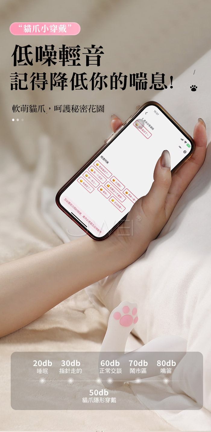 萌系貓爪軟糯出動!你的奶油小胖丁 小巧易入﹐安心暢玩 入體僅一指半寬度﹐ 每一次的輕饒和按摩﹐都是它的獨特表達。 G點奇襲﹐小小貓抓就釋放出巨大能量~~ 產品規格 ■材質: TPE+ABS ■規格: 詳如圖片標示 ■特色: 12頻震動、低噪輕音、生活防水、外出穿戴 ■供電方式: USB充電