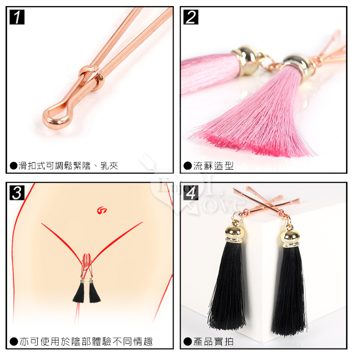 【陰乳の調戲】玫瑰金滑扣陰、乳夾 粉色流蘇 吊墜乳夾~一對裝﹝男女通用懲罰工具﹞