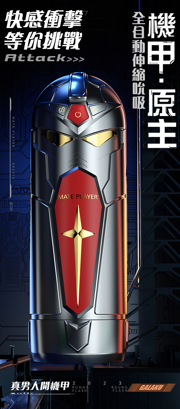 ►您現在的位置:首頁>GALAKU. 機甲原主 全自動伸縮+吮吸電動飛機杯-白紅