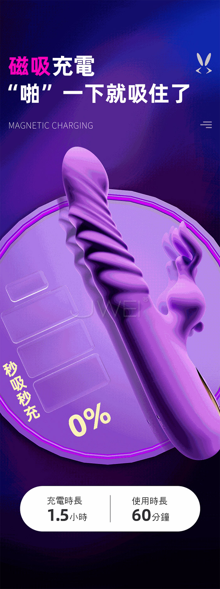 扭動兔子.6x6頻伸縮轉珠秒潮震動按摩棒-一棒頂N棒多種玩法