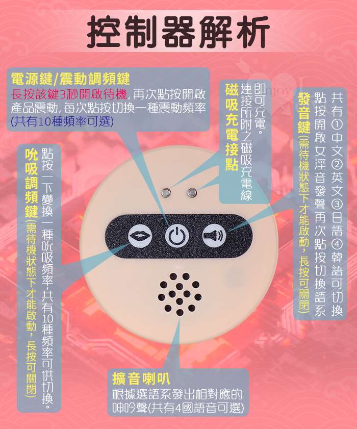 ►您現在的位置:首頁>風騷翹臀 ‧ 10段調頻吮吸+激震刺激體驗 智能四國語音叫床 逼真肉感電動自慰器﹝3公斤﹞附贈200ml潤滑液