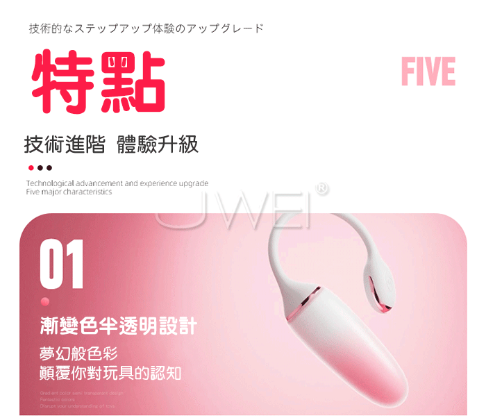 繽紛跳蛋它來了﹐ 白粉漸變色蛋,猛擊小公主心巴,帶給你不一樣的新體驗 C點潮震,酥麻感覺傳至全身 產品規格 ■尺寸:大小詳如圖片標示 ■材質:矽膠+ABS ■頻率:9頻震動 ■充電方式:磁吸接口 USB充電