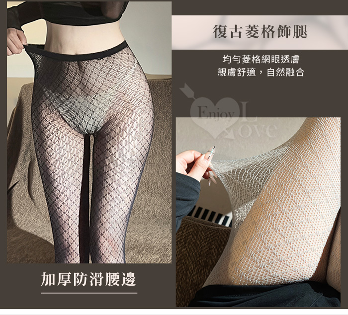 | 復古菱格細膩網眼透膚誘惑高腰連褲網襪﹝灰﹞