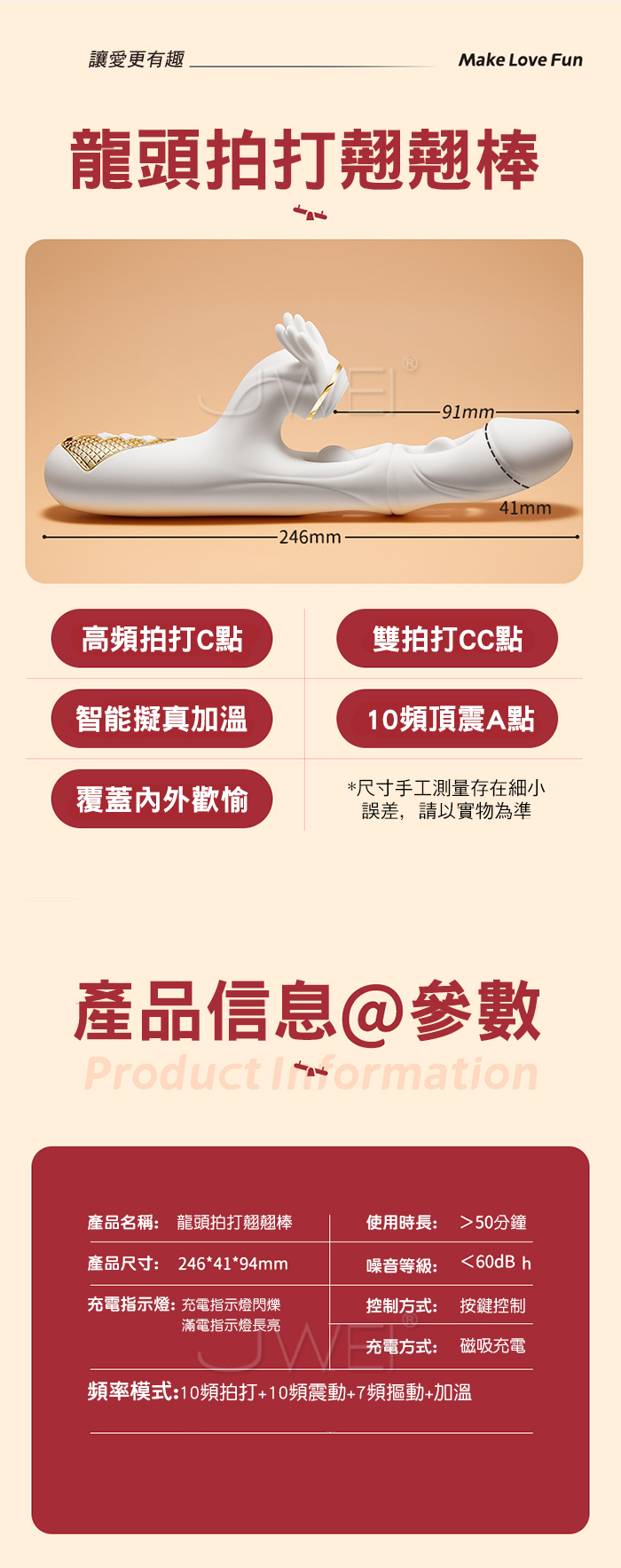 ■特色:7頻雙扣+10頻拍打+10頻震動、加溫