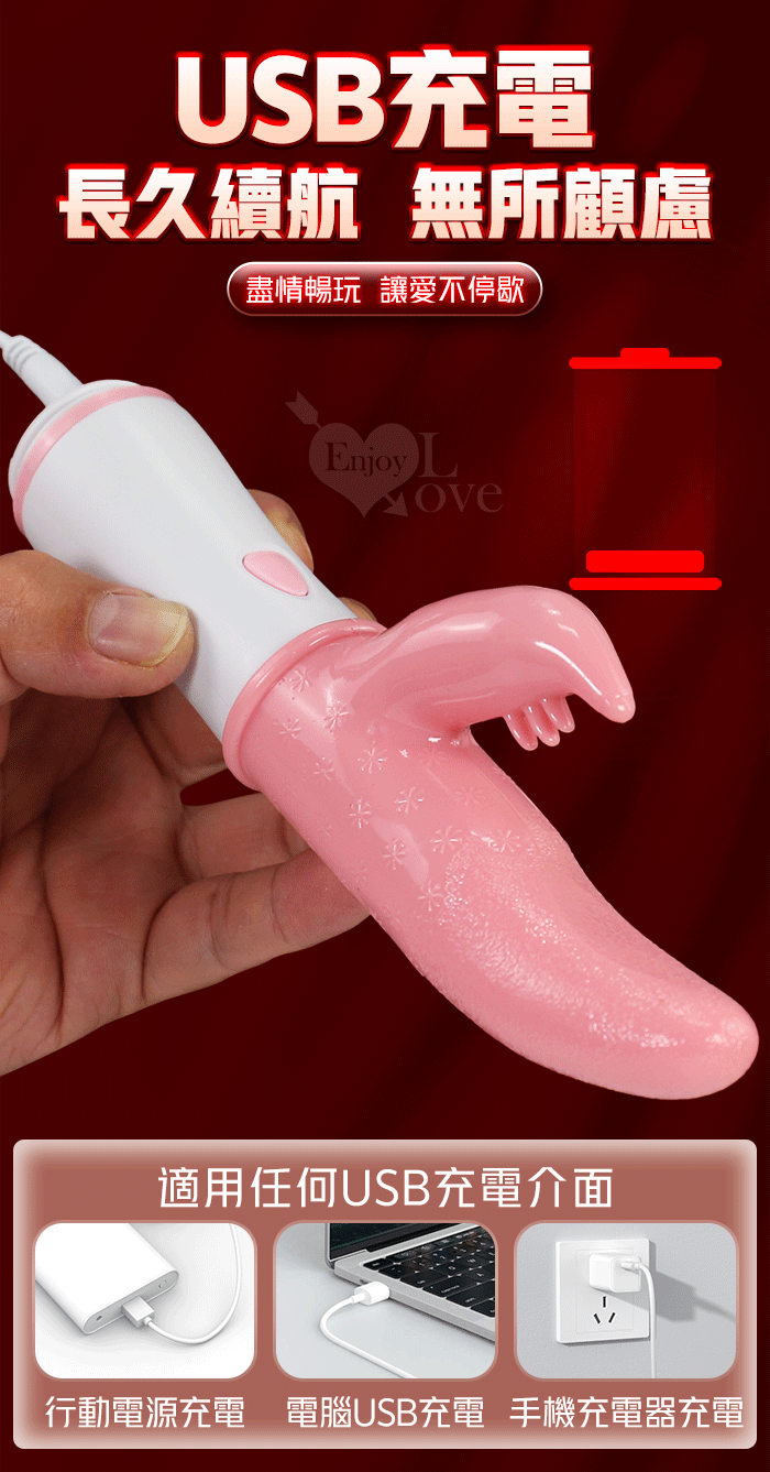 JIUAI 嗨玩大師 ‧ 內擺動拍打+外撩震顫 肥厚軟舌按摩棒﹝12頻調控+挺翹弧度+軟糯Q彈+USB充電﹞粉白