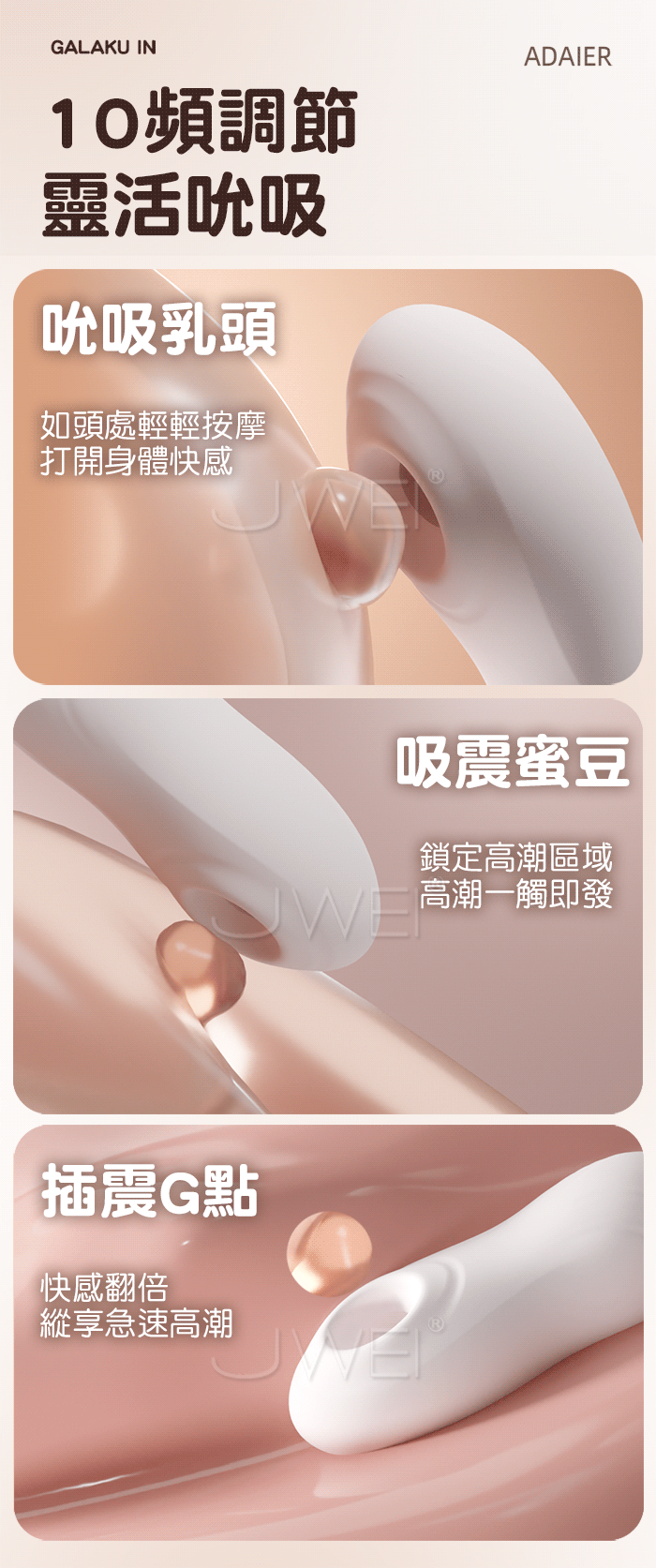 雙重快感設計震動與吮吸合二為一,帶來更深層次的滿足感。 10頻吮吸模式,模擬輕柔吸啜到強勁吸附,完美觸動敏感地帶。 10頻震動模式,多種頻率隨心選擇,從輕柔震撼到高潮迭起,滿足不同喜好。 產品規格 ■尺寸:大小詳如圖片標示 ■重量:如圖片標示 ■材質:TPE+AES ■功能:10頻吮吸、10頻震動、APP遠距操控