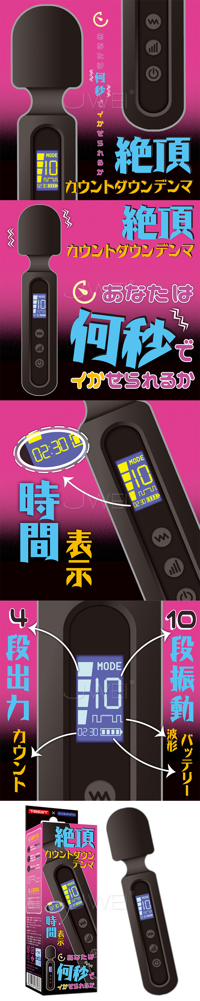 ►您現在的位置:首頁>日本原裝進口T-Best.絶頂カウントダウンデンマ 10段強震秒潮AV棒【黑色】