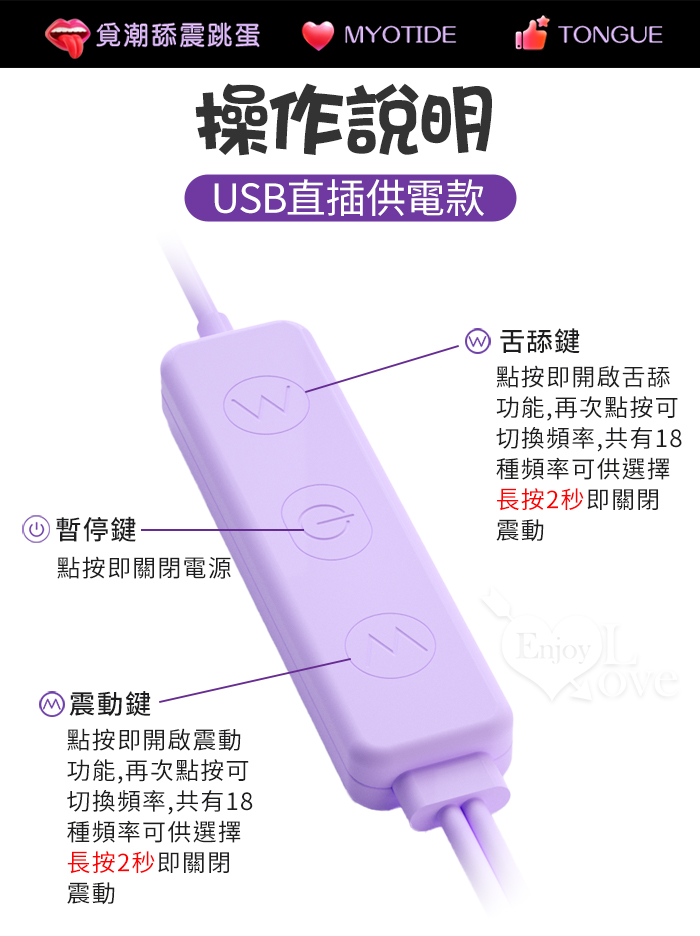 ►您現在的位置:首頁>ROSELEX 勞樂斯 ‧ 覓潮 18段變頻舌撩+震動 雙邊獨立控制雙跳蛋﹝USB直插供電款﹞粉