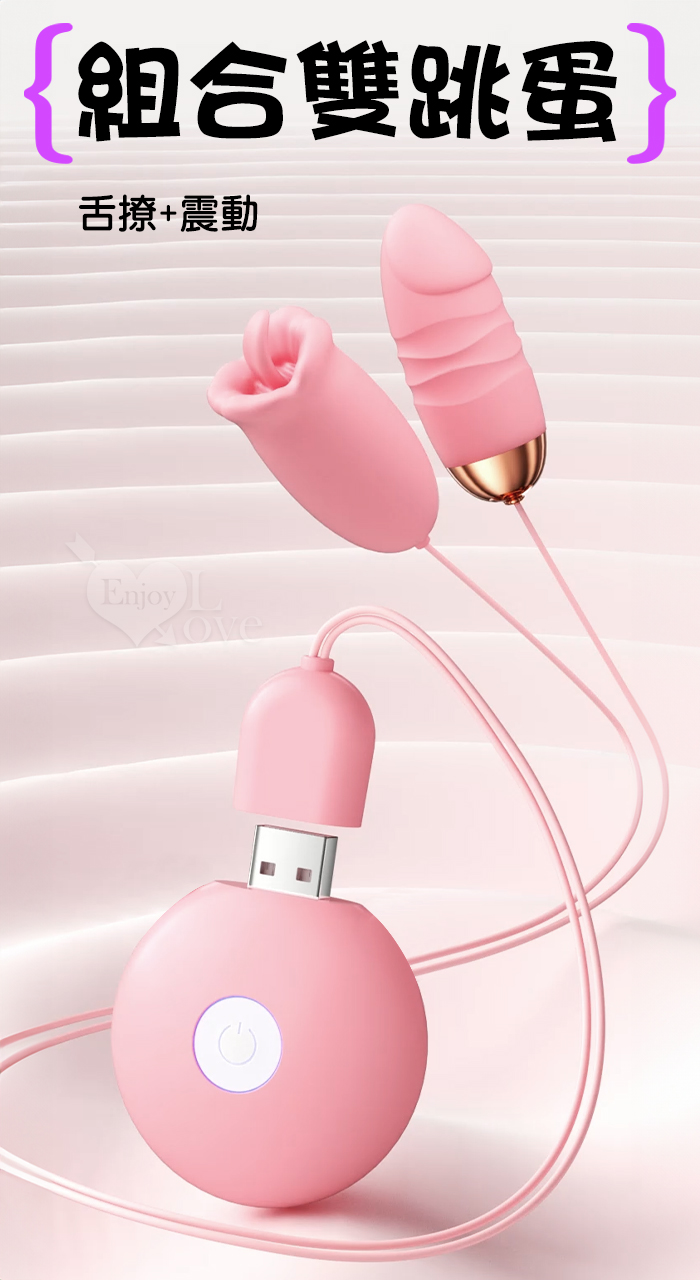| ROSELEX 勞樂斯 ‧ 覓潮 20段變頻舌撩+震動組合雙跳蛋﹝USB充電控制器款﹞粉