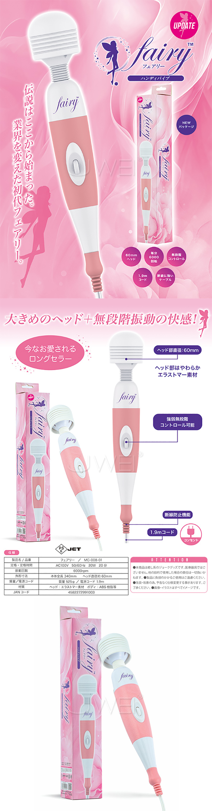 | 日本原裝進口 FAIRY フェアリー 仙女 滾動式調整無階段震動秒潮AV棒【基礎款】