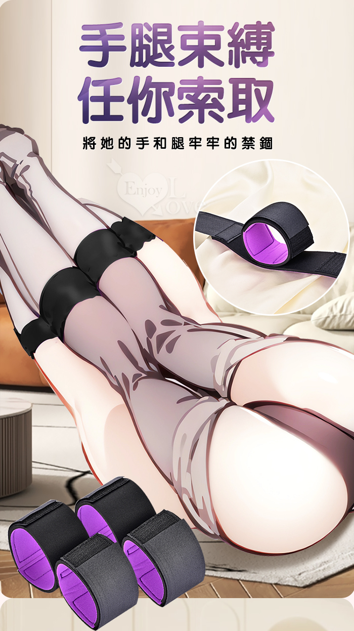 暗夜囚愛組 ‧ 皮革眼罩+失語口塞+手腳束缚銬 禁錮感知三件套 SM