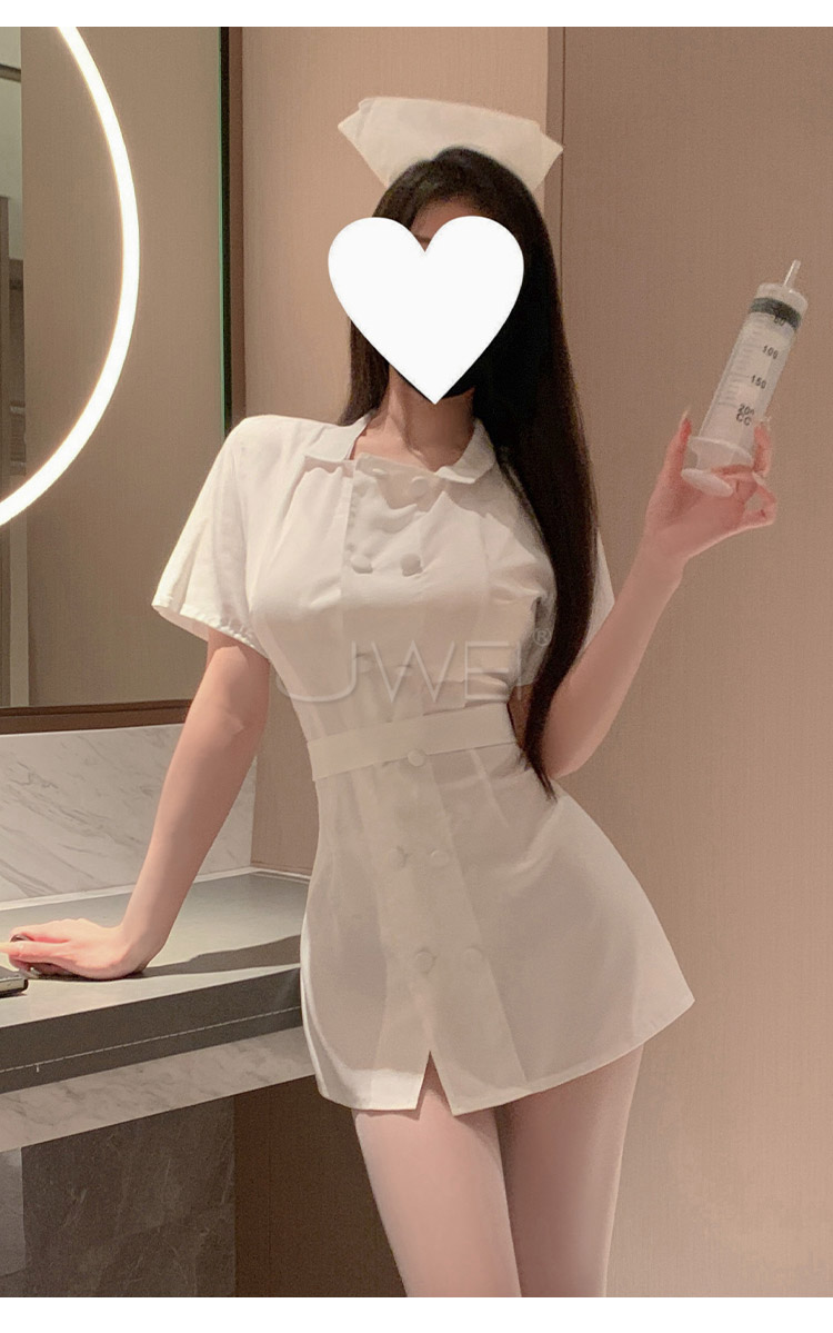 首頁>護欲天使.清純白衣護士套裝【衣服+帽子+腰帶+T褲】