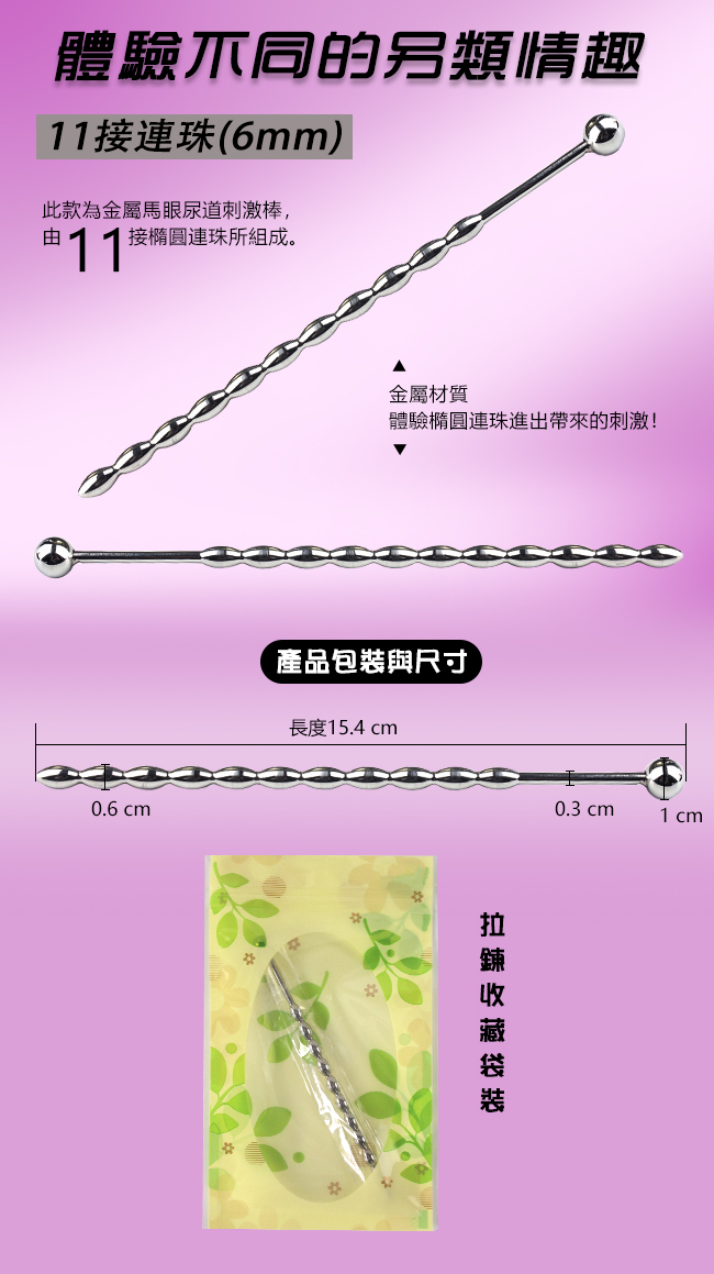 JO禁戀 ‧ 金屬馬眼尿道刺激擴張入侵 - 11接連珠﹝6mm﹞