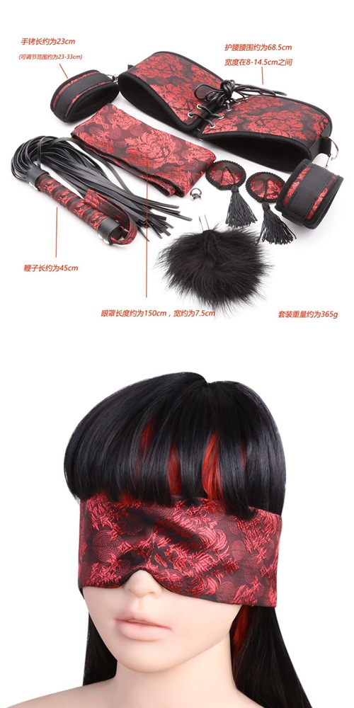 | 滿3000元贈品 SM 情趣古典壓花六件組(眼罩+手銬+鞭子+挑逗棒+腰封+乳貼)