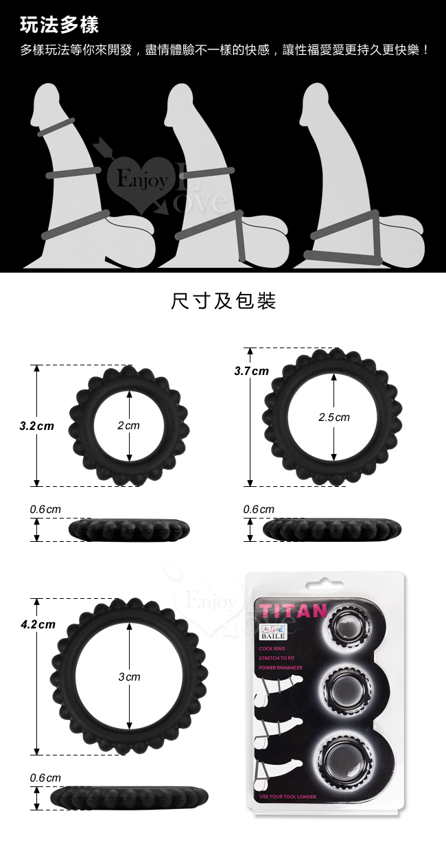 | 【BAILE】TITAN 猛男鎖精持久三套裝凸齒環 - A款