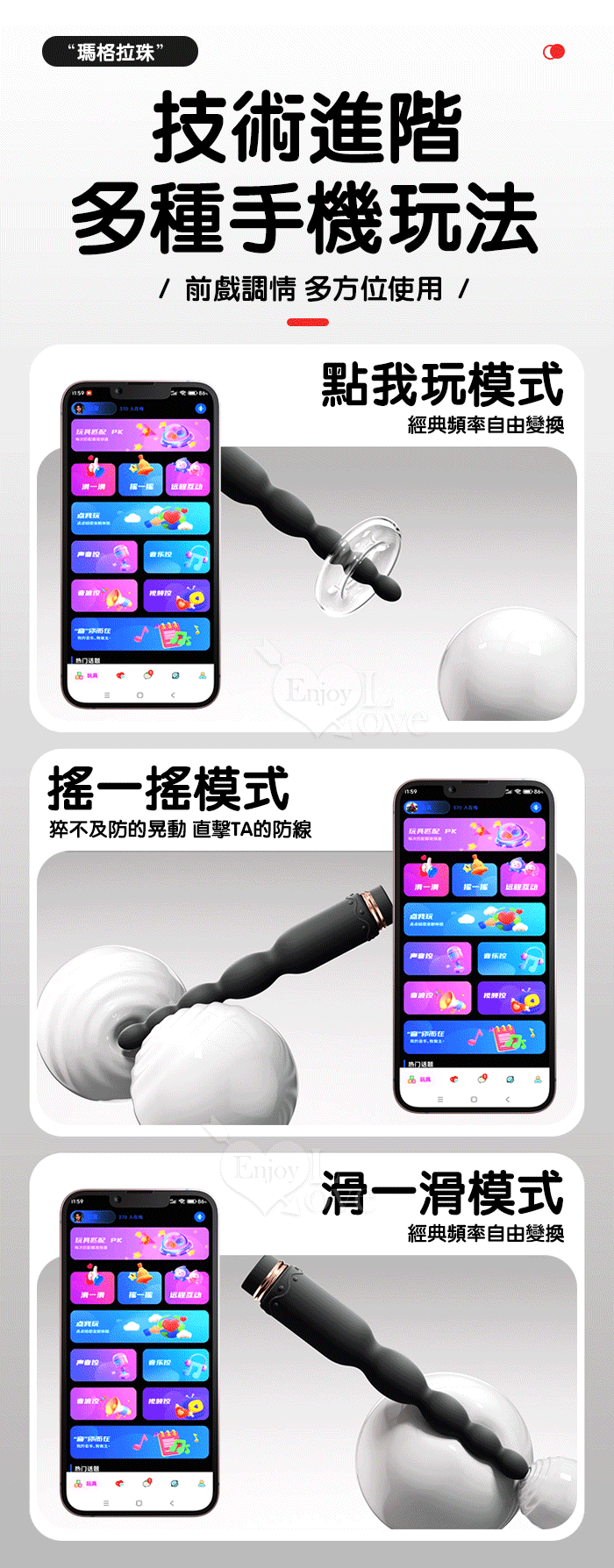 | ROSELEX 新手玩家 瑪格連環拉珠按摩棒~10頻強勁震動/細小易入/男女通用/可手機APP遙控﹝具兩種操控模式﹞粉